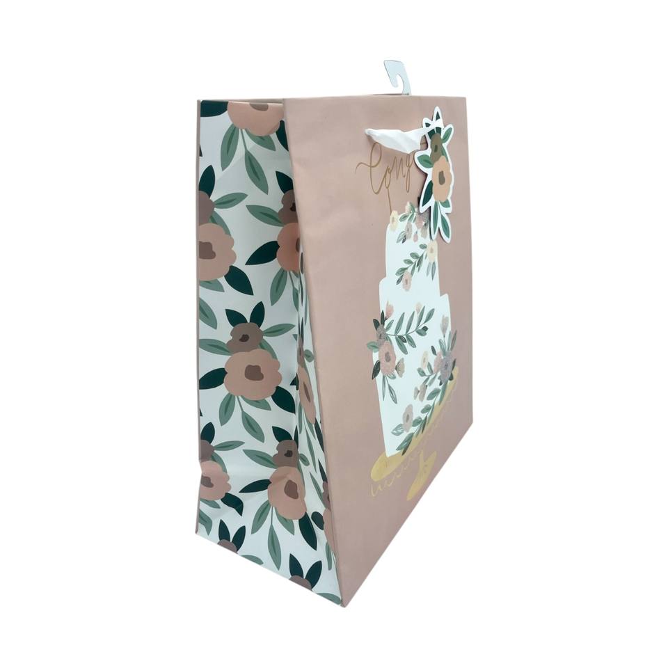 IntBOX Blush Pink Floral Design Wedding Cake Gift Bag Eco-Friendly Laminated Paper Hot Stamping Elegant Style for Special