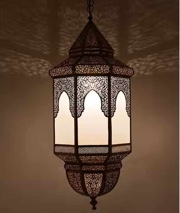 iron Moroccan hanging lantern with traditional pierced patterns for exotic and dreamy candlelight by decor impex