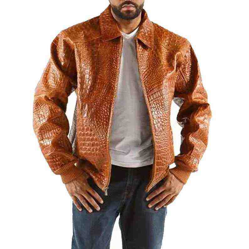 jacket for men Sheepskin Men Brown for Crocodile Embossed Leather Jacket for Alligator Textured for Crocodile Skin Finished