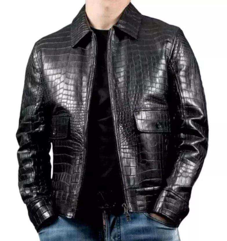 jacket for men Sheepskin Men's Real Leather Crocodile Embossed Jacket Moto Biker Print Jacket Custom Logo And Design OEM
