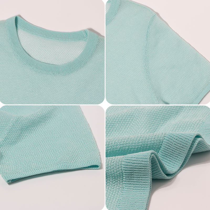 Blouses and Shirts for Women Custom Logo OEM Summer Short Sleeve Round Neck T-Shirt Thin Casual Style Mesh Shirts Women