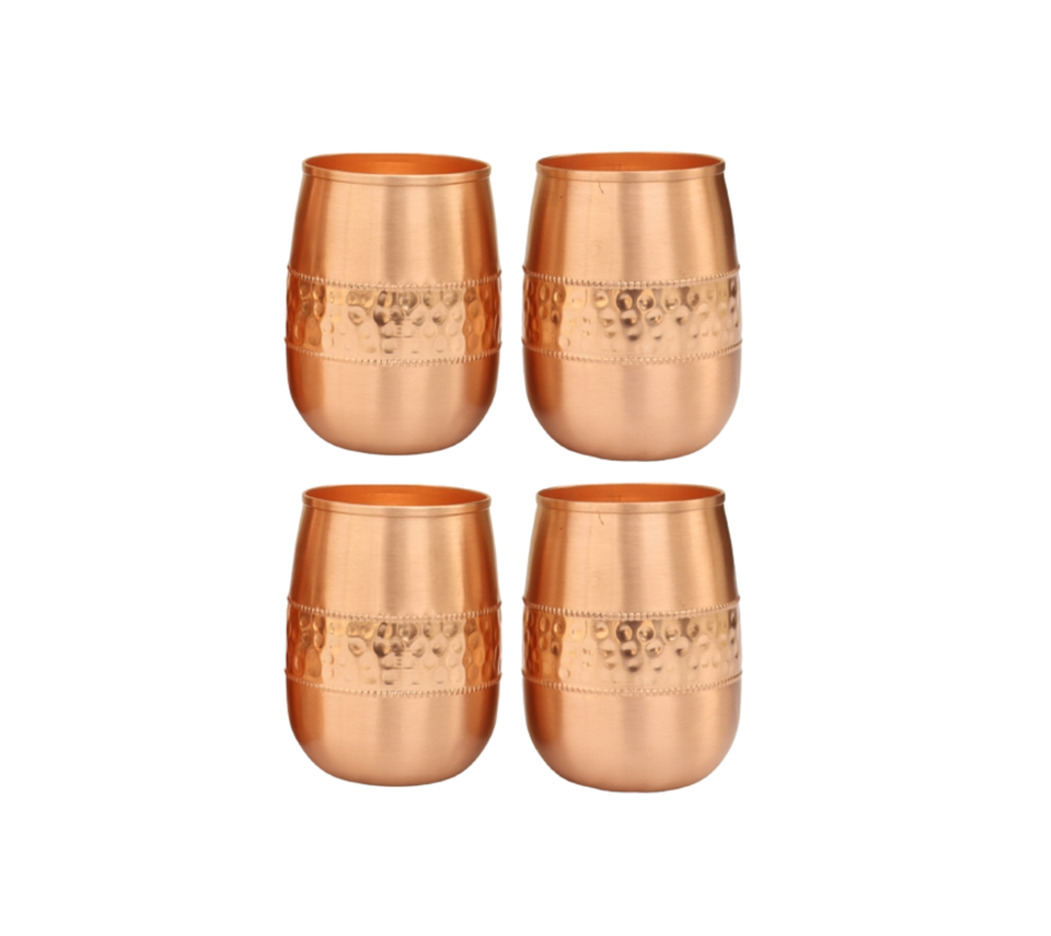koi Premium Copperware Quality Traveler's Copper Cups for Ayurveda Health Benefits Pure Copper Hammered Water Glass Tumblers