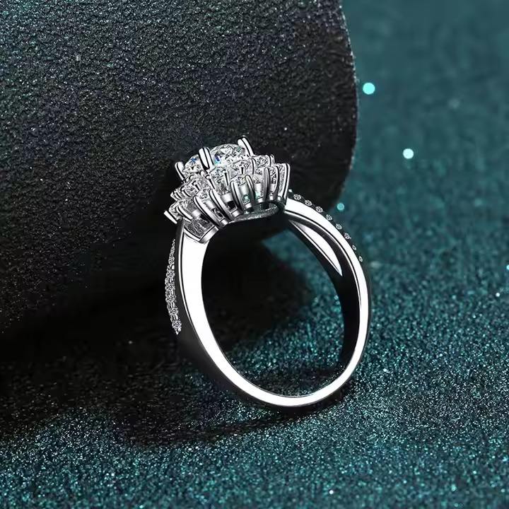 lab grown VVS 925 Sterling Silver Moissanite Diamond Ring Classic Wedding Band Wholesale Boutique Jewelry