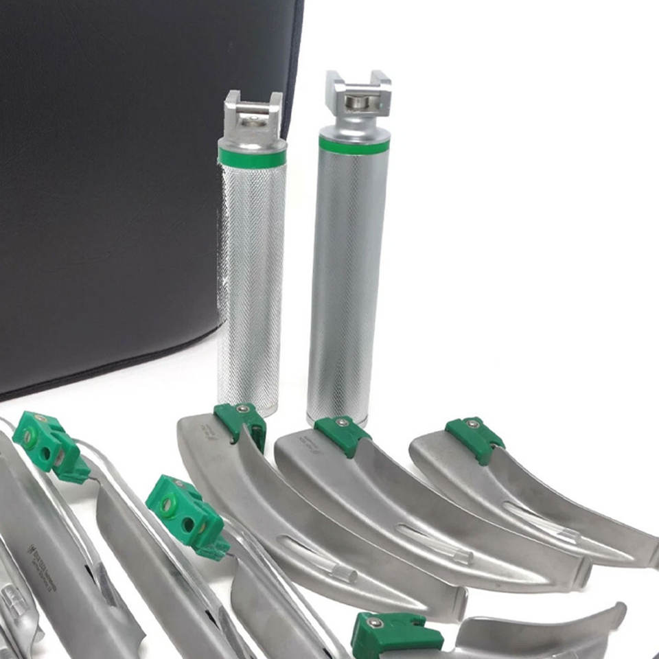 laryngoscope set 12 pcs intubation blades and 2 handles fiber optic kit stainless steel german quality