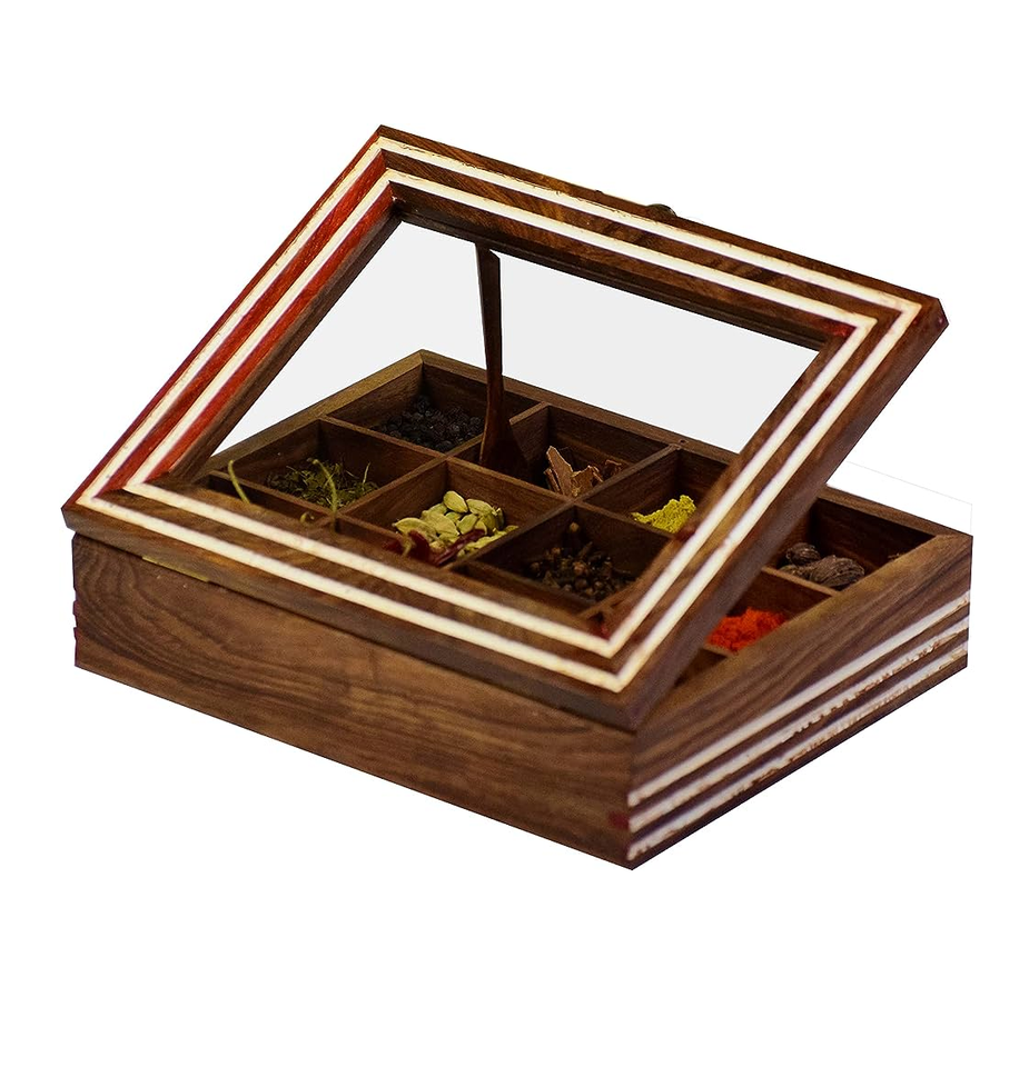 Latest Design Wooden Finished Spice Box Utility Storage Box Square Shape High Quality Boxes Multipurpose Use