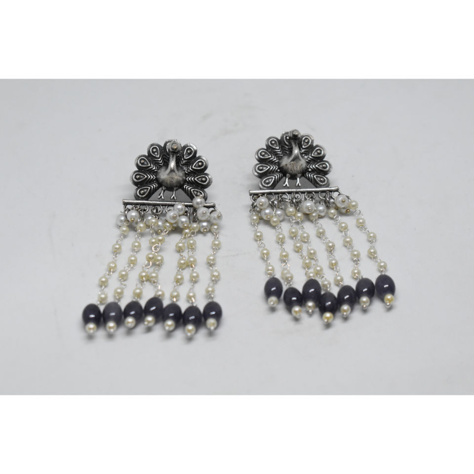 latest fashion handmade beautiful western look brass silver look alike peacock stone stud hoop earing for girls and women