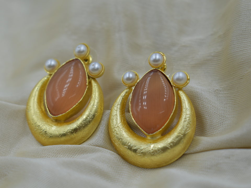 latest fashion handmade goldplated brass stone Stud Earring Stone 18K Gold Plated Earrings women fashion jewelry earrings women