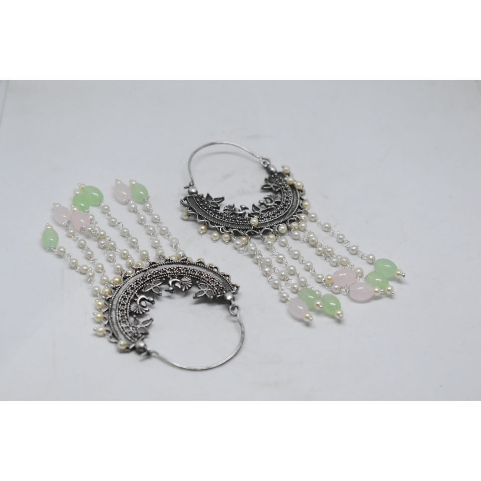 latest trending wholesale fashionable jewellery 2025 silver look alike brass beads hoop earing for girls and women