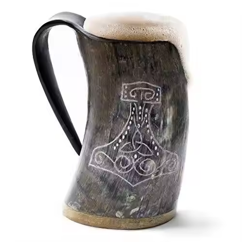leak proof lid vacuum insulation coffee mug Handmade Real Horn Polished Drinking Horn Mug Tankard Custom by crescent crafts