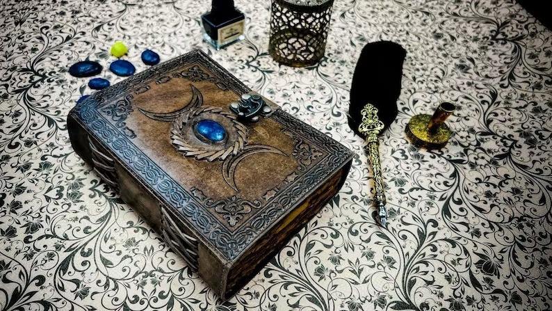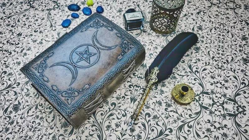 Leather Journal Triple Moon Goddess Spell Book Book of Shadows Grimoire Deckle Edge Paper Spiritual Wicca Witch Craft Vintage