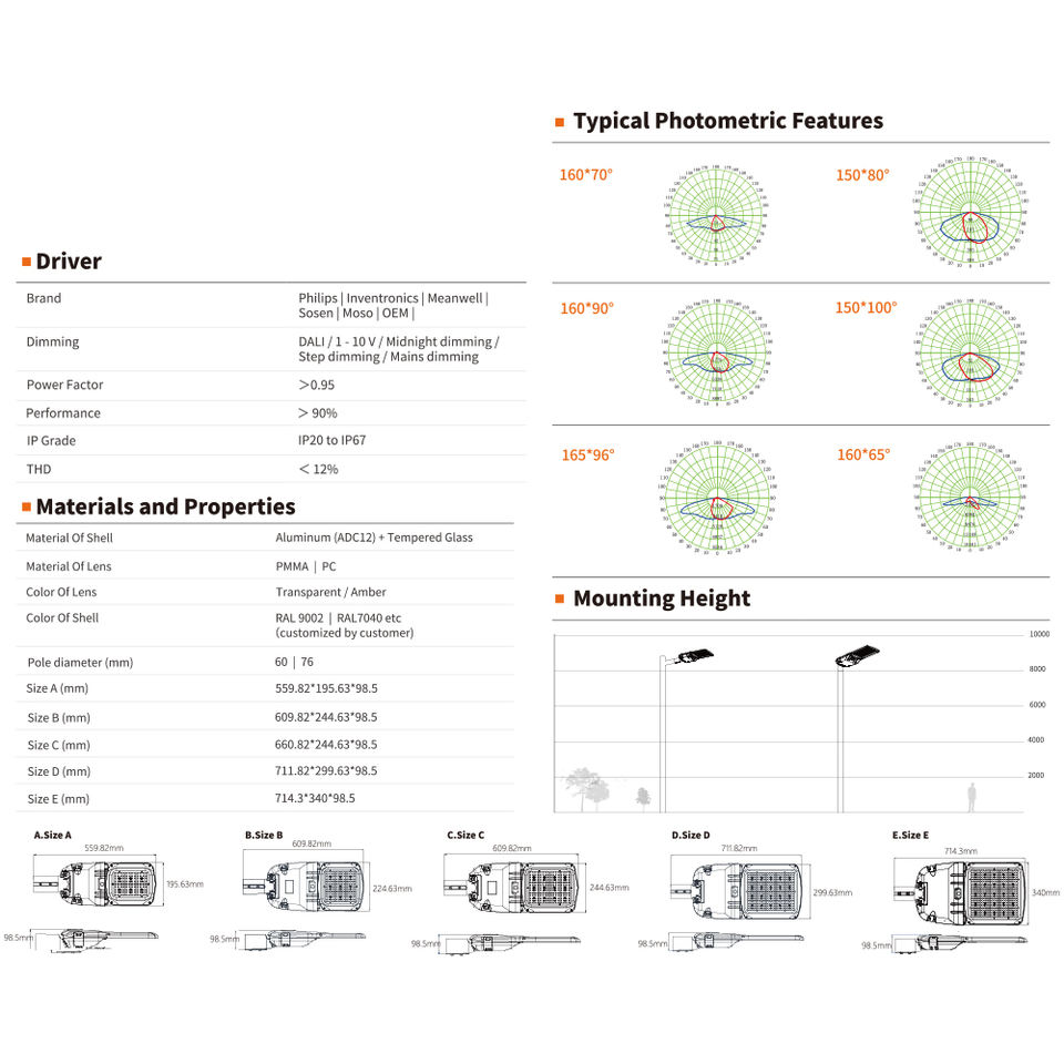 IP67 Weather Resistant Polysilicon LED Street Light AC Power Supply for Off-Road Garden Lighting