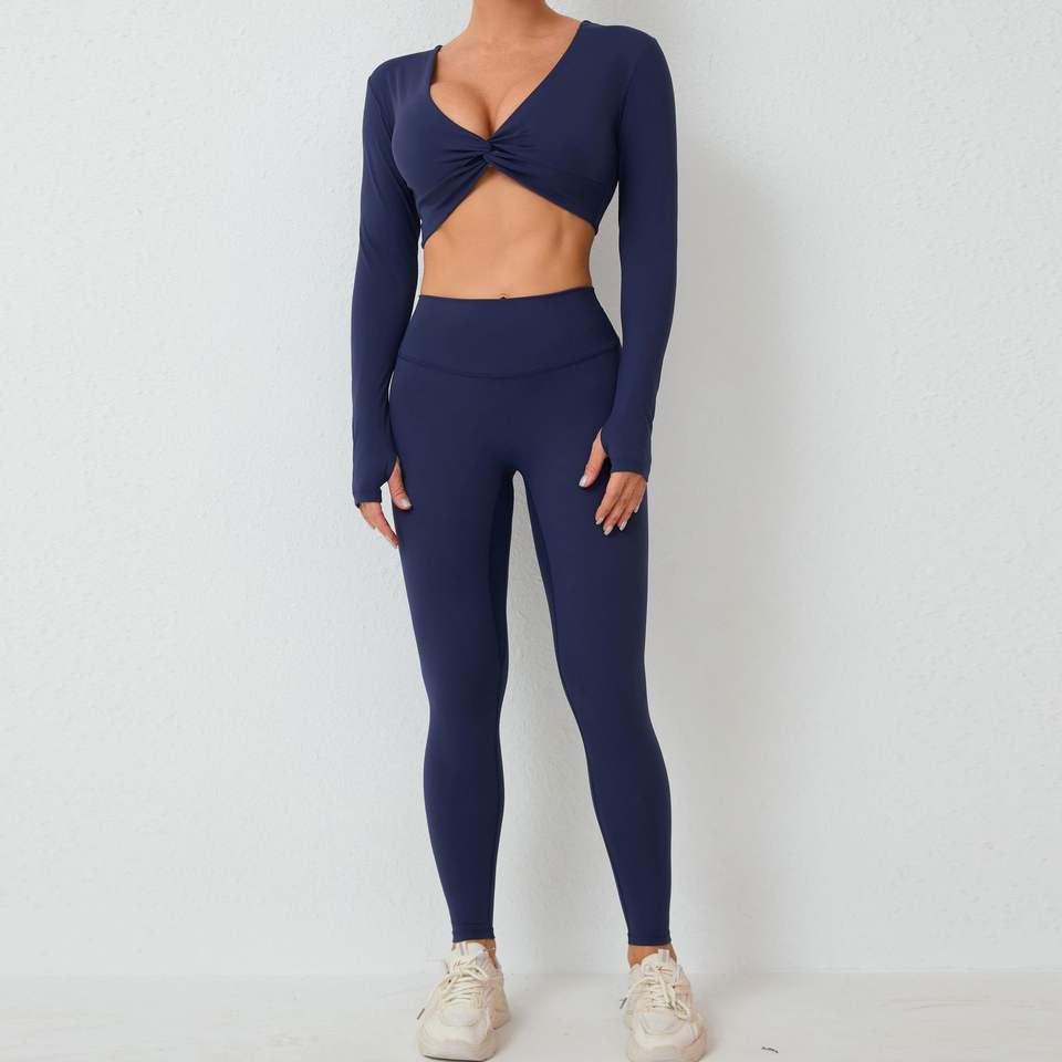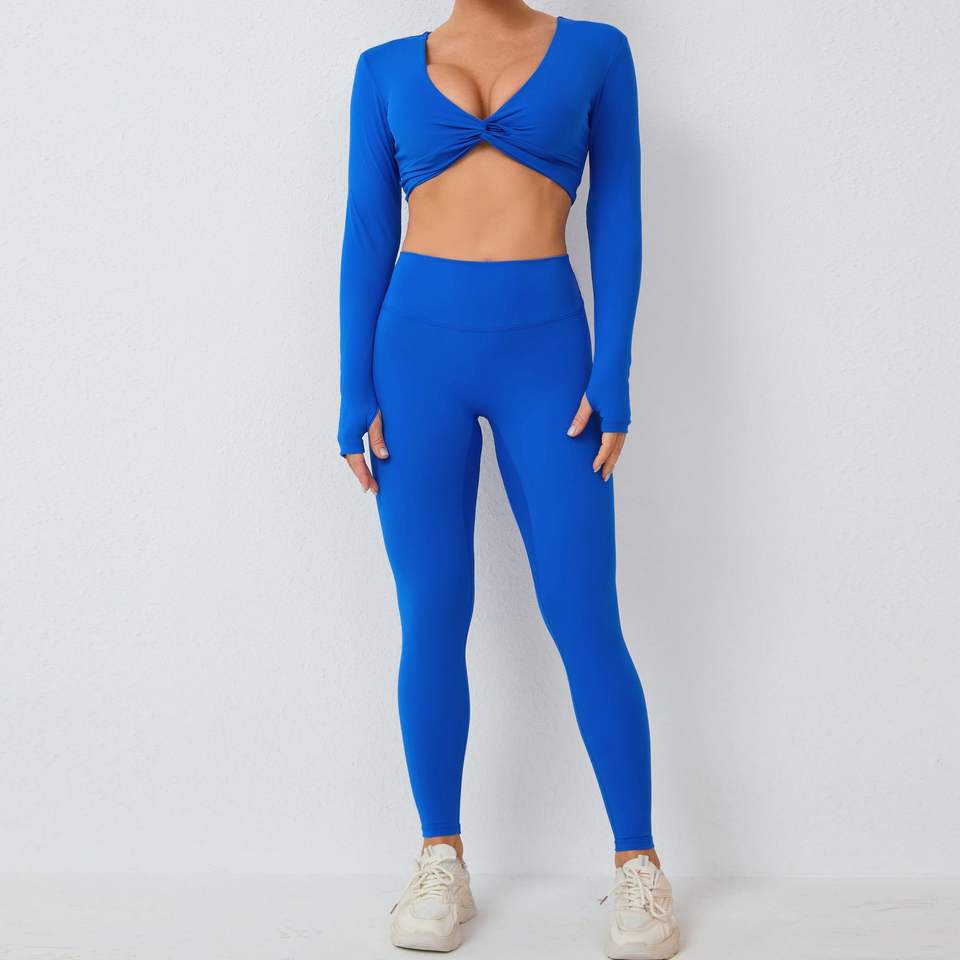 2024 New High Elastic Women's Solid Pattern High Waist Yoga Activewear 2-Piece Set Breathable Lightweight Long Sleeve