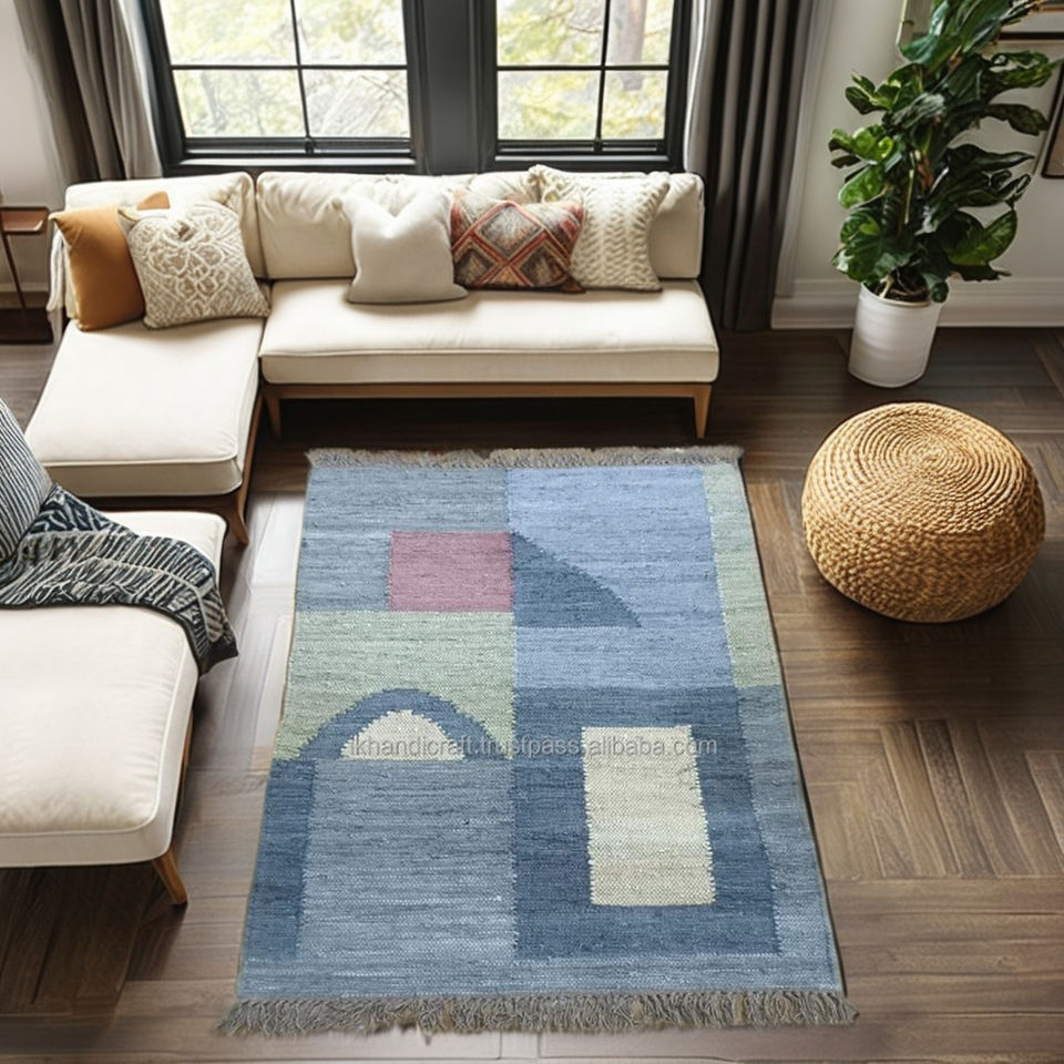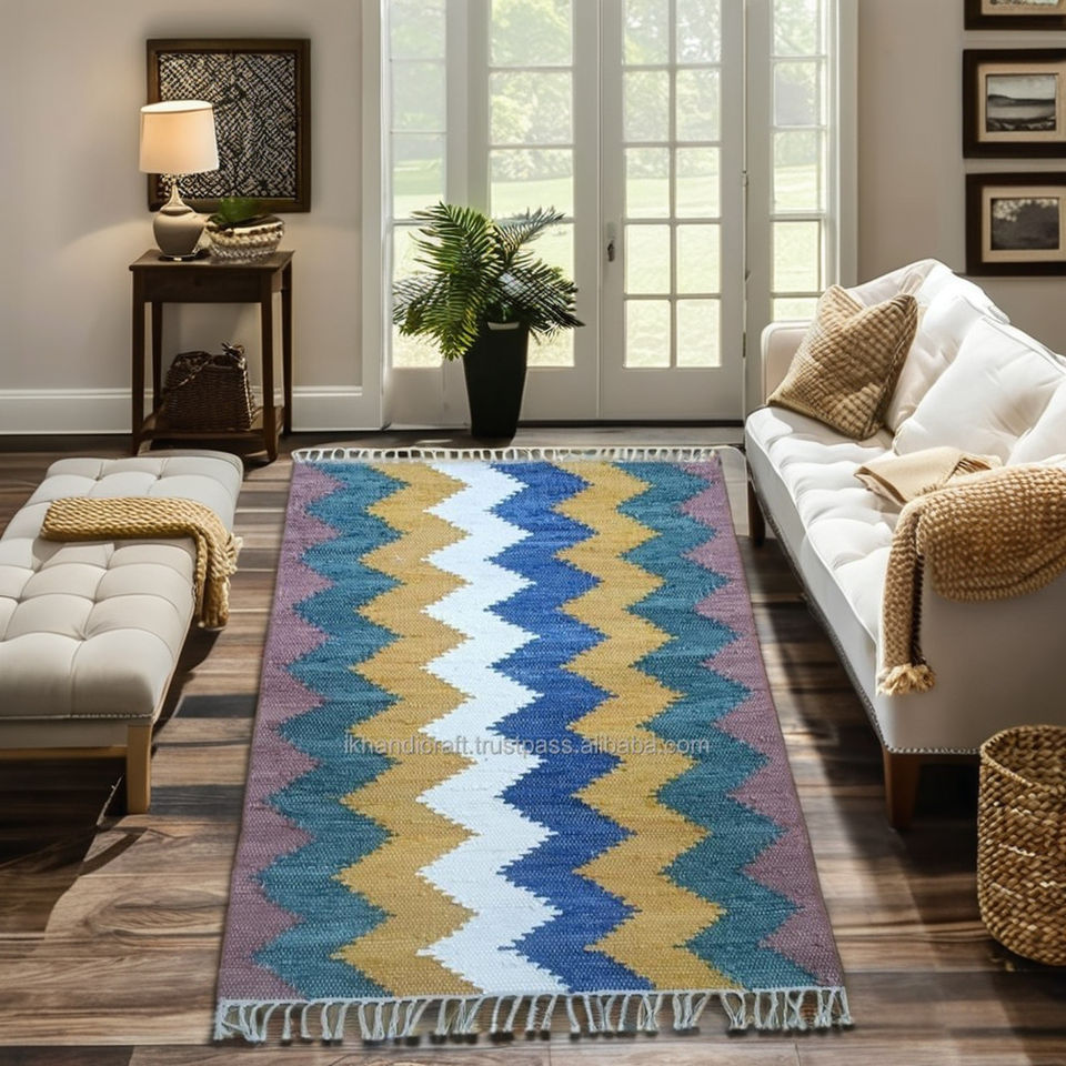 low Price Modern Luxury Natural Rugs Eco-friendly Handwoven Leather Cotton Puzzle Woven Technique for Home Living Room Bar