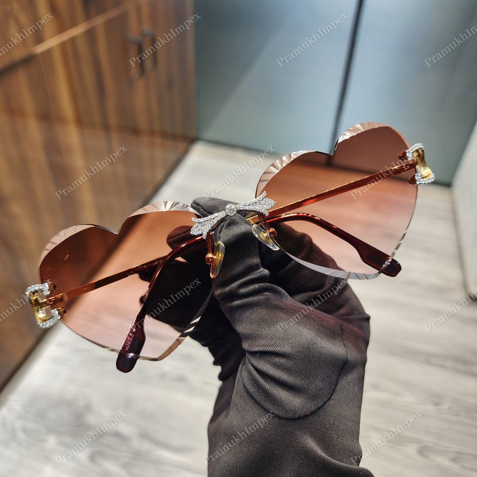 Luxurious Heart-Shaped Designer Bridge Sunglasses for Women Brown Shades Studded Moissanite Best Wholesale Price Anti-Reflective