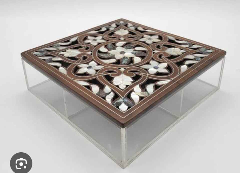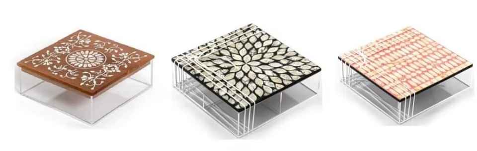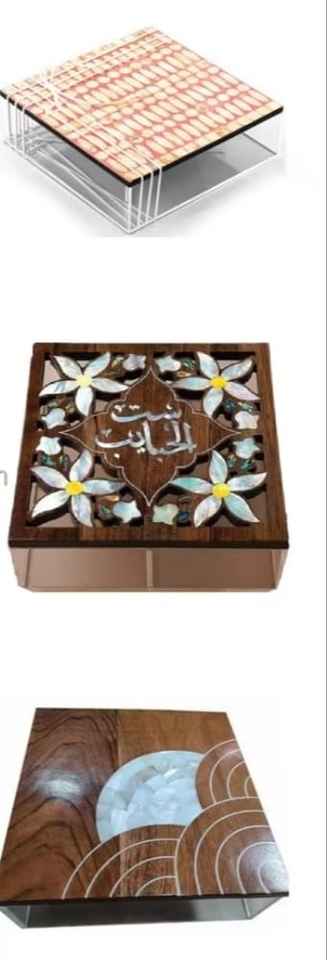 luxury Custom Handmade Acrylic Box with Glossy Wooden Lid and Pearl Inlay Designer Gift Box for Sweets and Party Decor