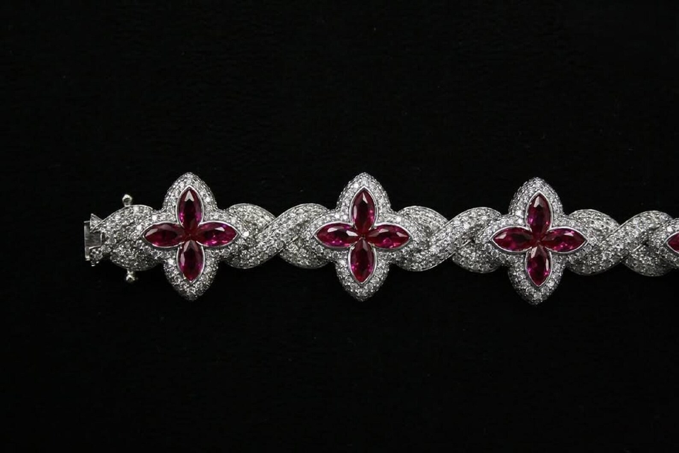luxury Moissanite Flower Link Bracelet 925 Silver Diamond Look Floral Design Luxury Statement Bracelet For Women