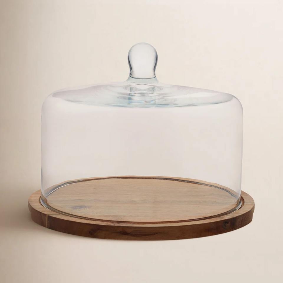 luxury Round Wood Server Cake Stand with Glass Dome