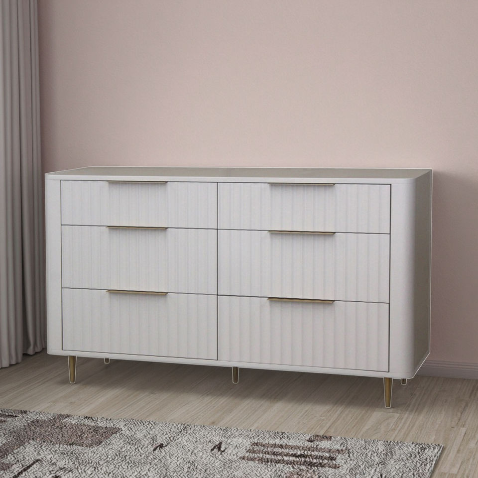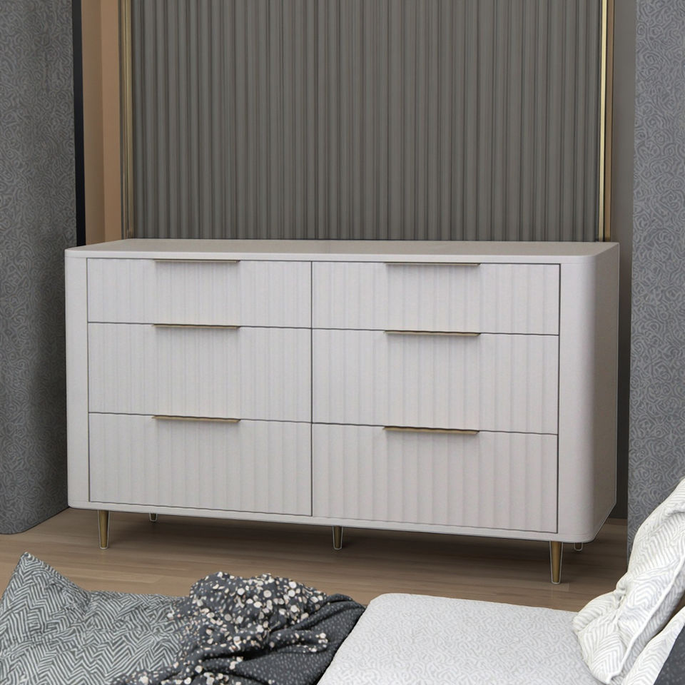 luxury Solid Wood 6-Drawer Wide Chest Bedroom Storage Cabinet Contemporary Elegant Design for home and hotel