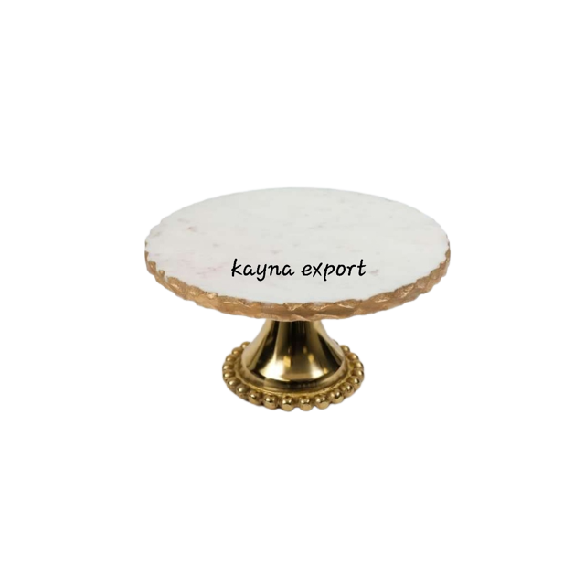 Luxury Decorative Beard Design Metal Stand with Gold Edge Marble Top Cake Stand Designer Metal Cake Stand