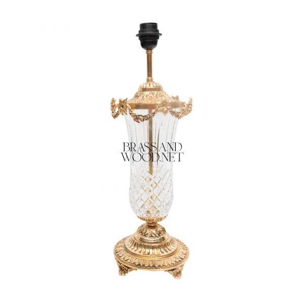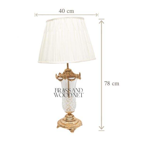 luxury golden brass and crystal table lamp with classic cut glass design handcrafted decorative lighting for elegant home decor