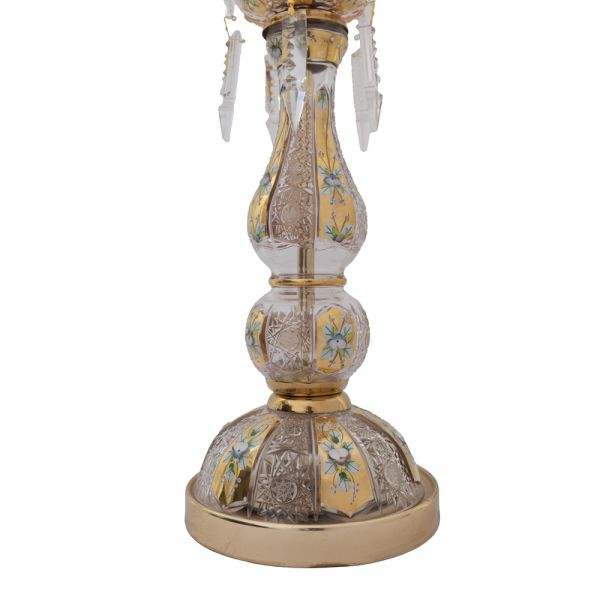 luxury golden brass and crystal table lamp with ornate floral design handcrafted decorative lighting piece