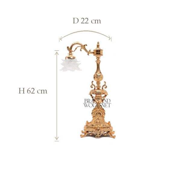 luxury golden brass table lamp with ornate floral base handcrafted decorative lighting piece featuring frosted glass flower