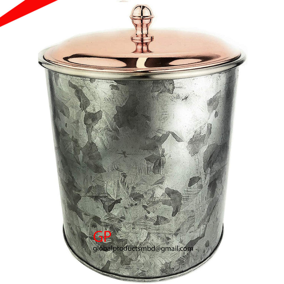 Luxury Metal Round Shape Wine Cooler Ice Bucket Beverage Bucket with Decorative Flower on Top for Weddings Hotels