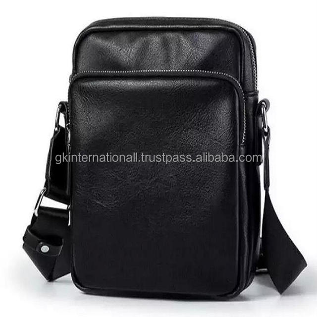 Luxury Top Quality Male Cross Body Shoulder Business Bags in Black Smooth Leather
