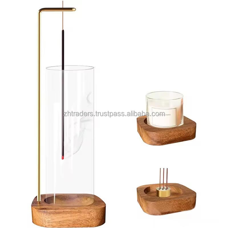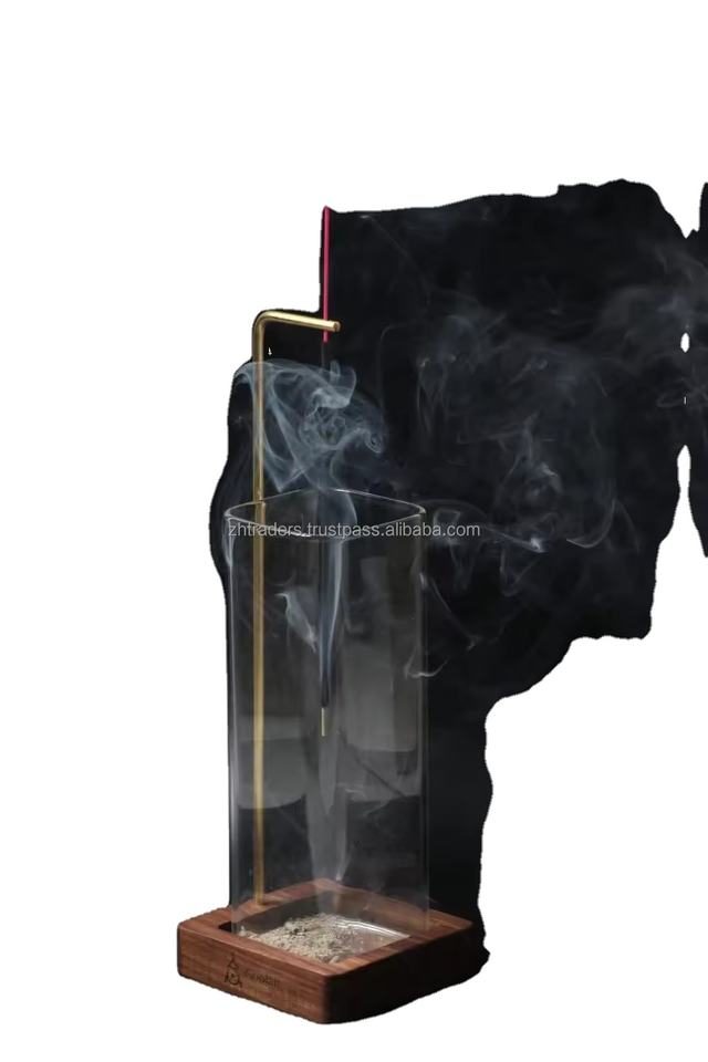 Exquisite Sheesham Wood and Glass Incense Stick Holder with Rustic Handmade Detailing for Elegant Home Spa, and Meditation Decor