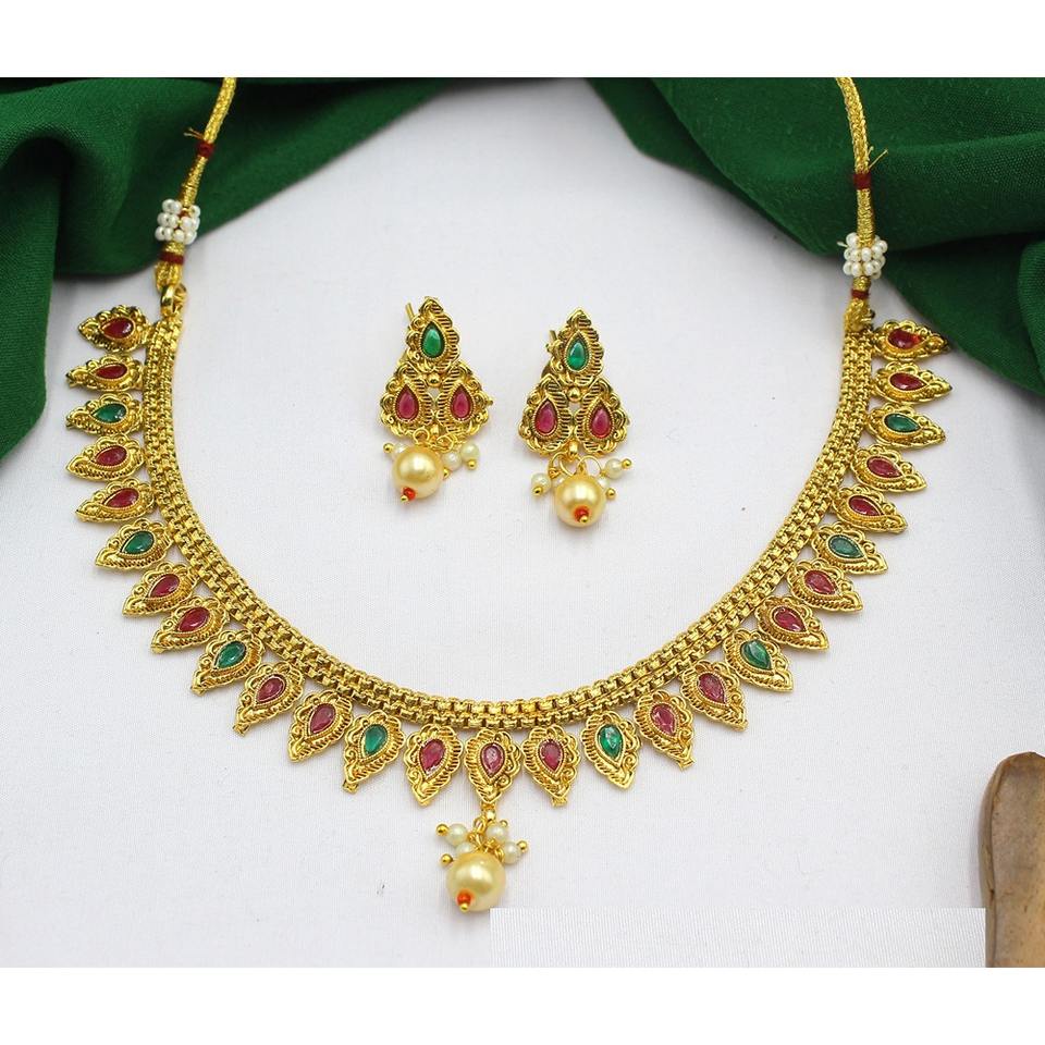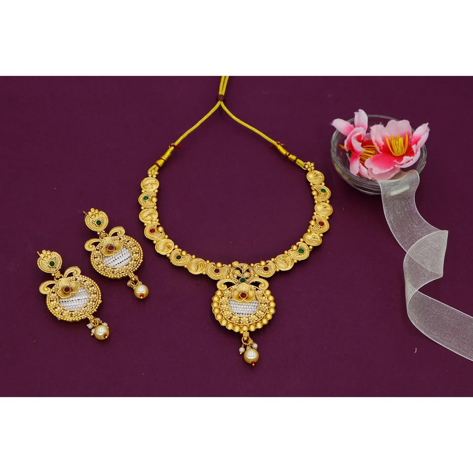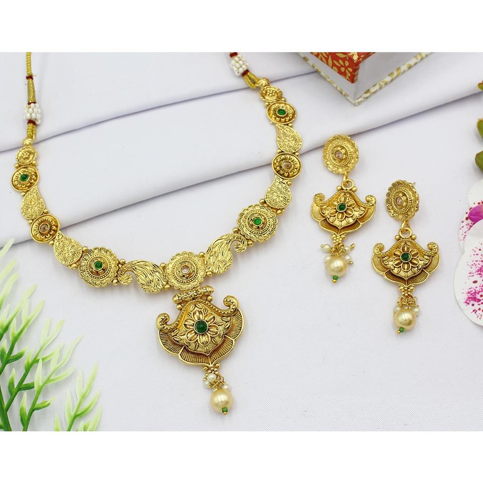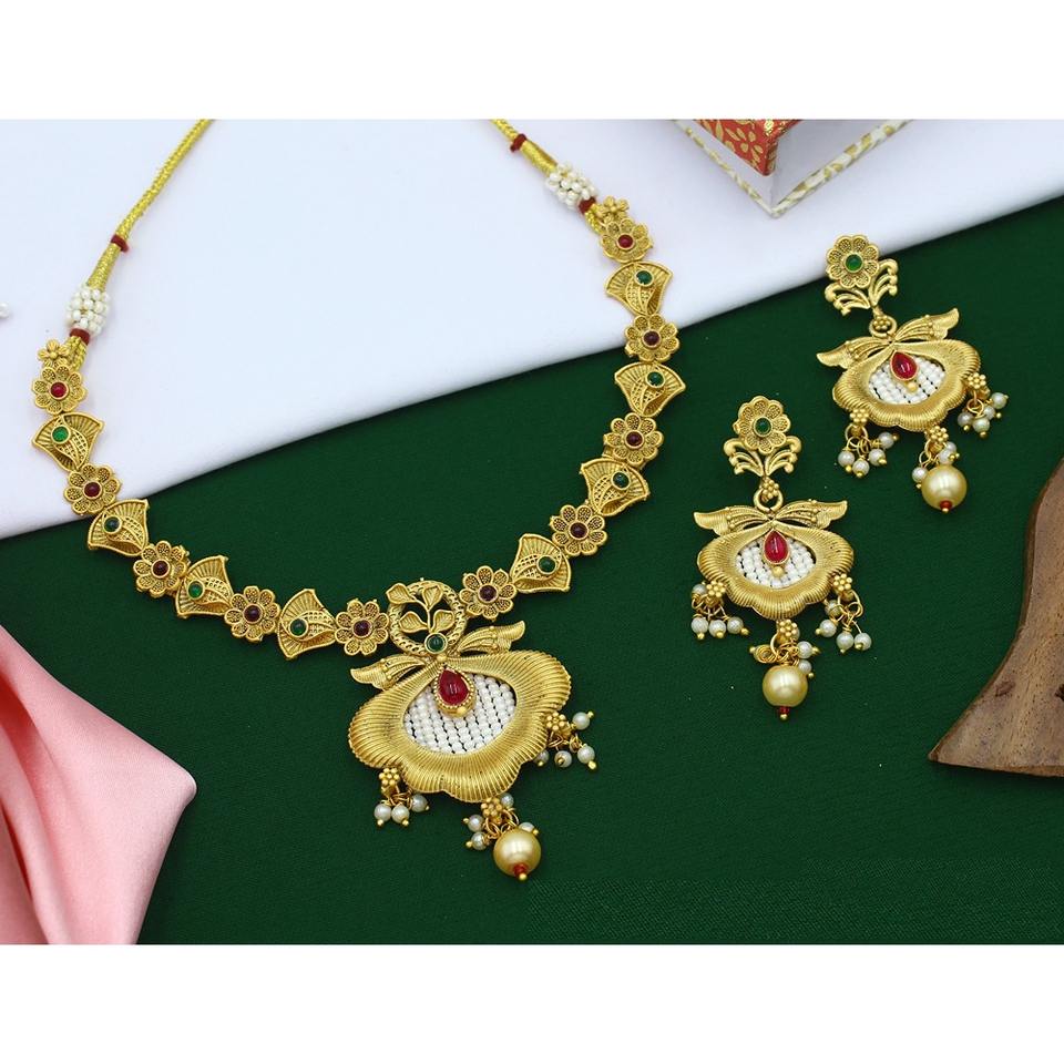 Matte Finish Jewelry Indian Design Gold Plated Matte Finish Necklace Earrings Fashion Jewelry Set for Women Wedding Collection
