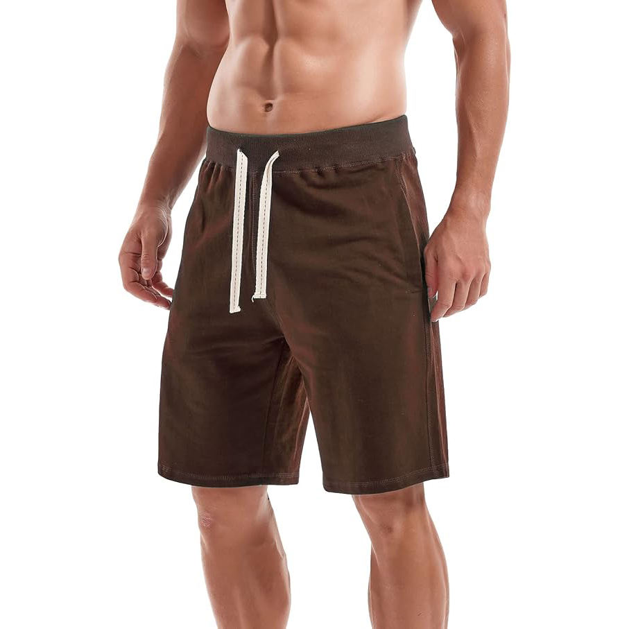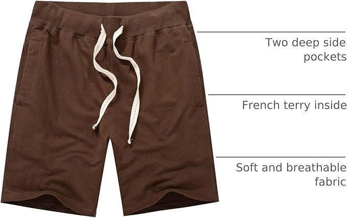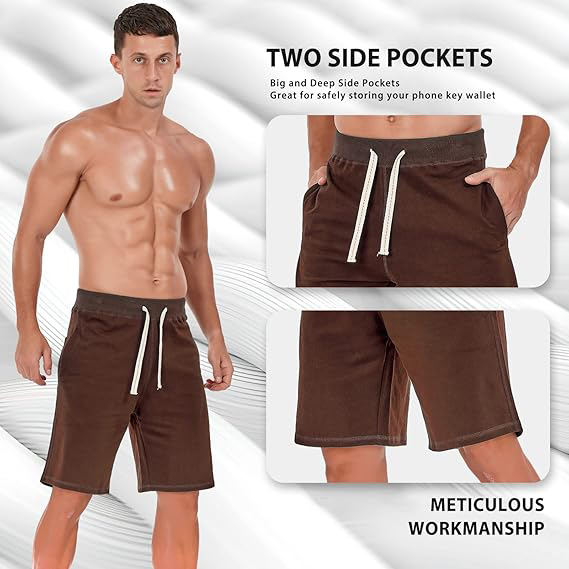men fleece shorts cotton soft fabric casual lounge workout elastic waist breathable comfort