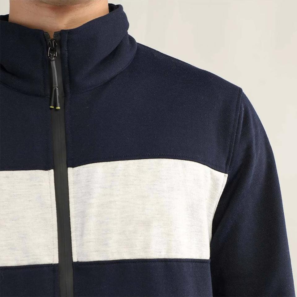 Men Navy Blue Acid Wash Streetwear Printed Tracksuit Set Zip up Jacket White Stripe Polyester Blend Athletic Two Piece Outfit