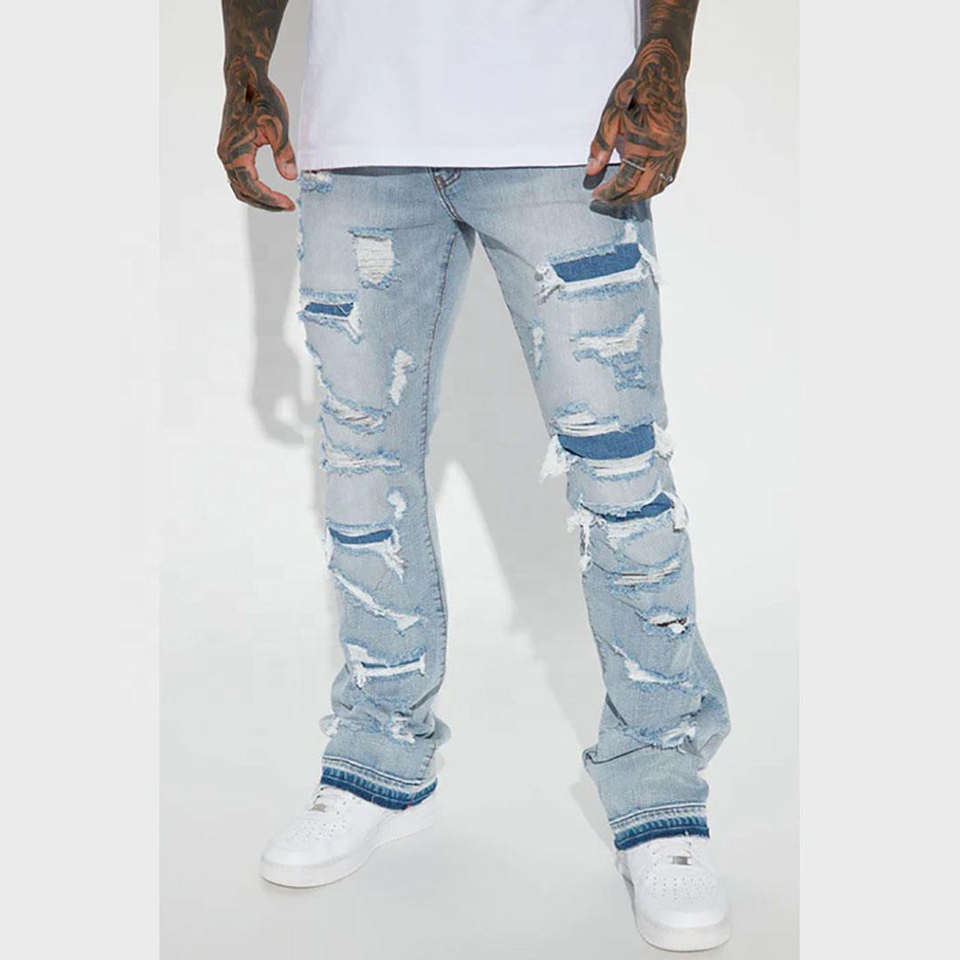 men's pantswashed new style jeans straight pants pure color trend new fashion loose long pants high street denim trousers