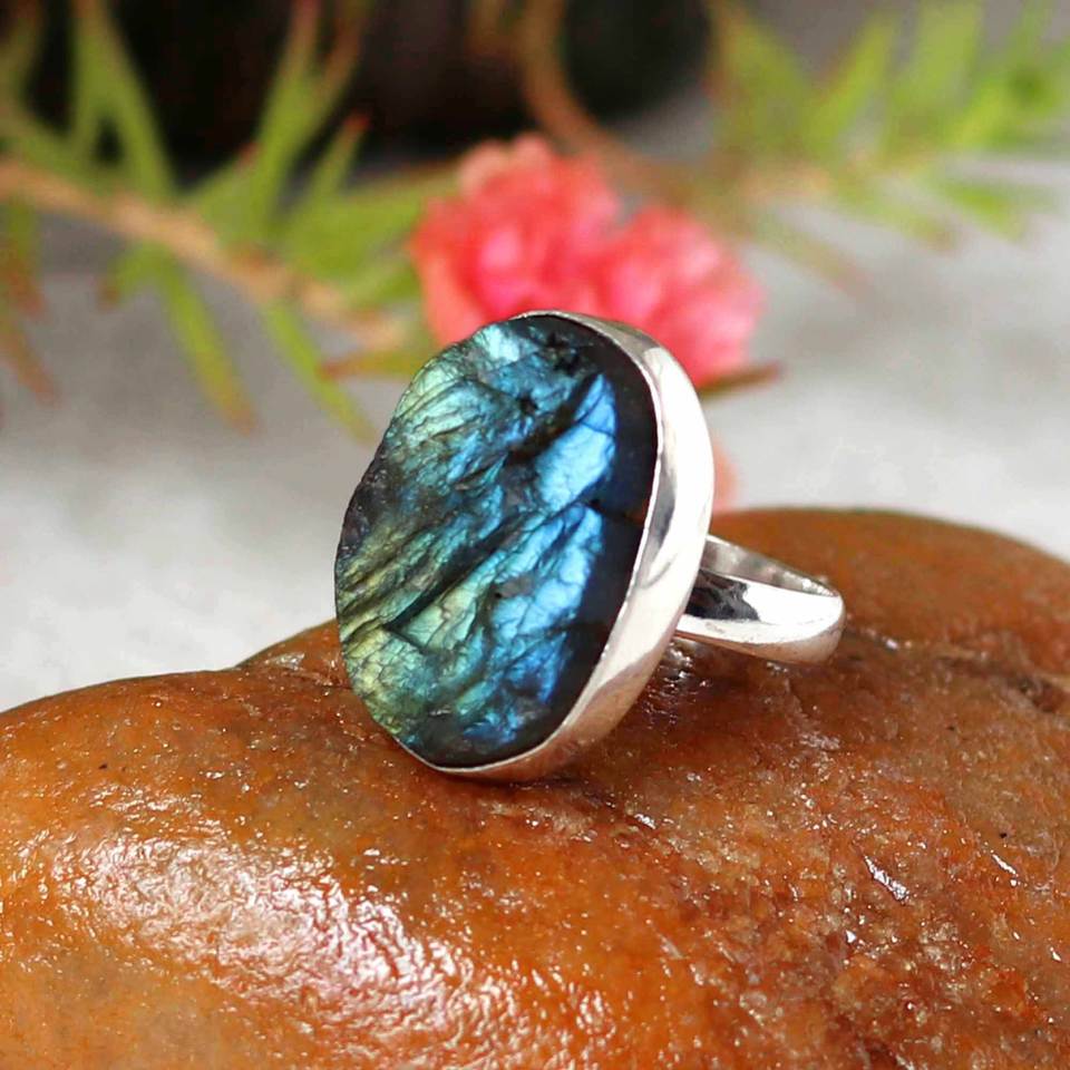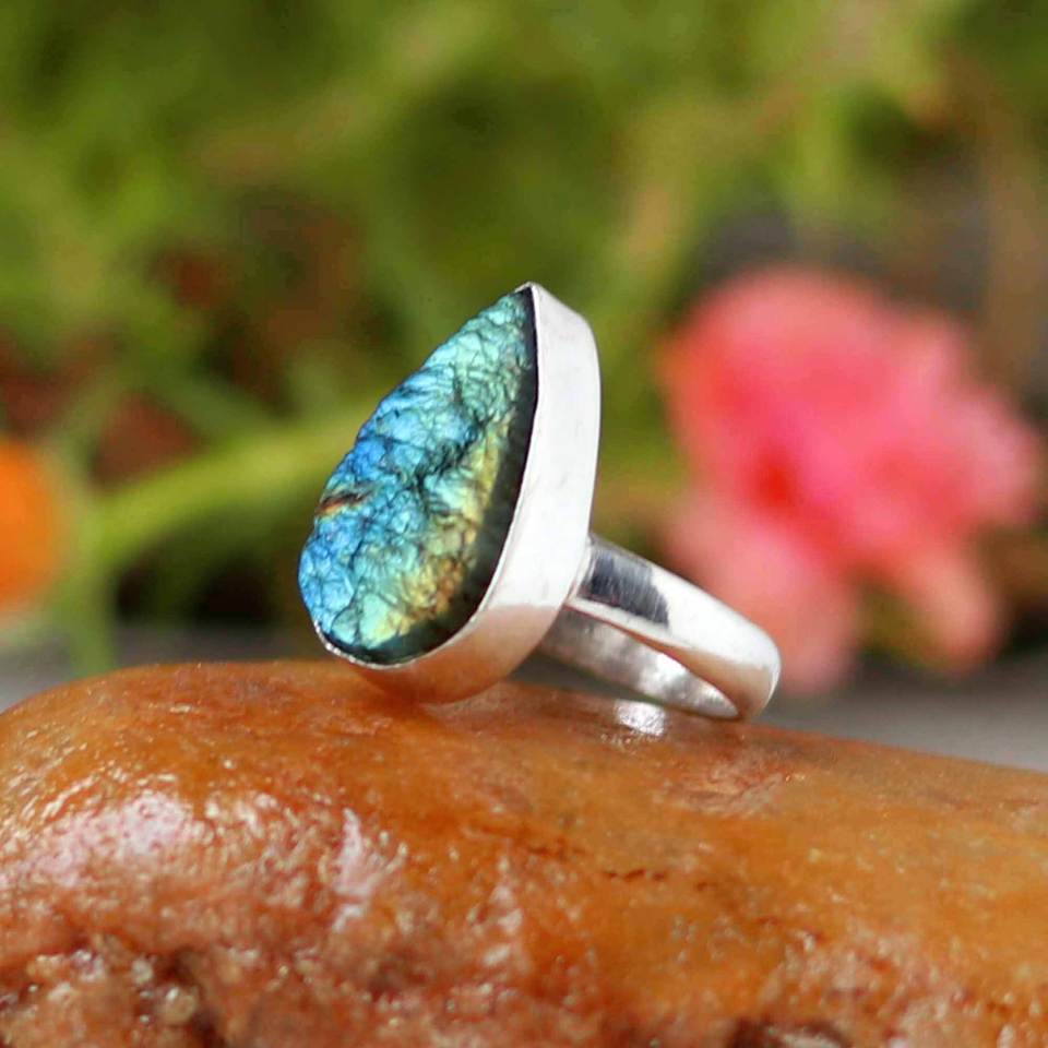 Labradorite Druzy silver overlay ring