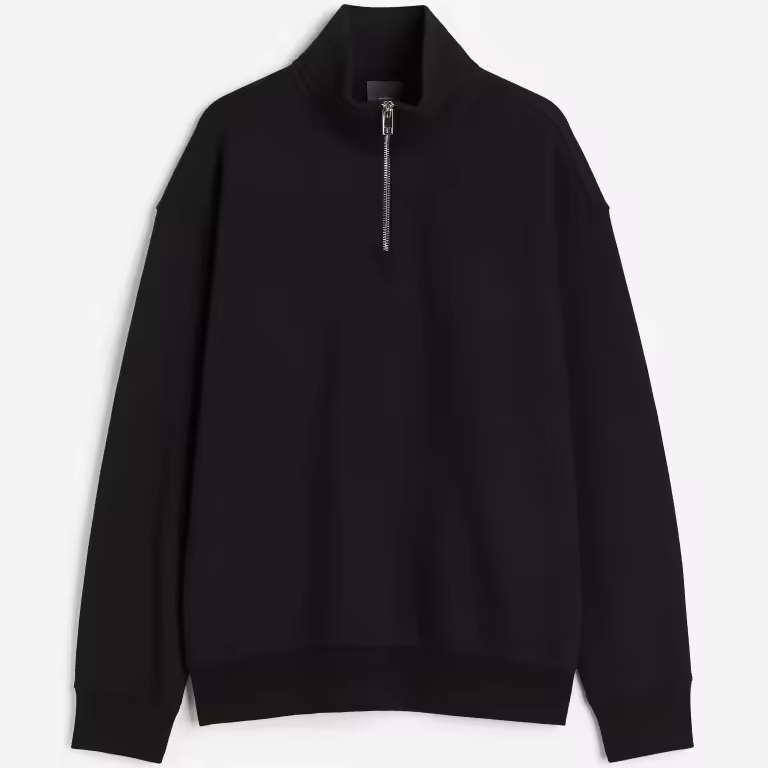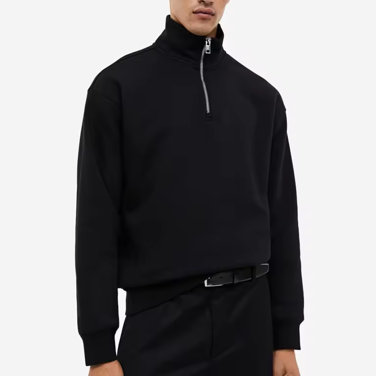 men spring clothes mock neck sweatshirt luxury quality streetwear cotton oversized drop shoulder half zip-up Hoodies