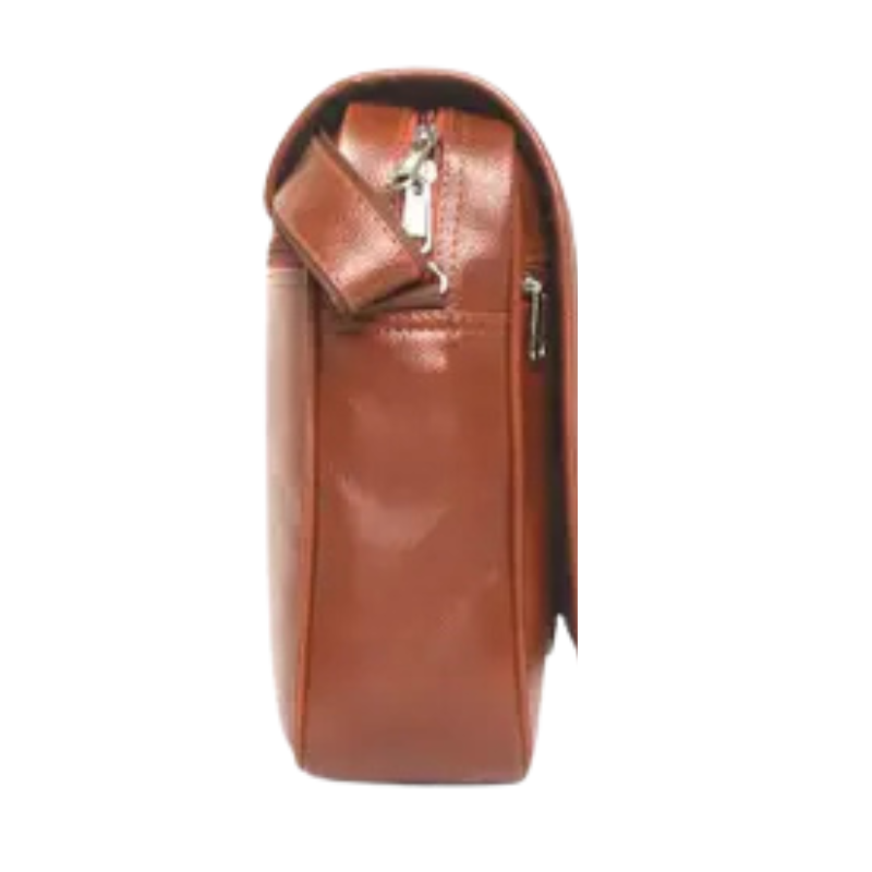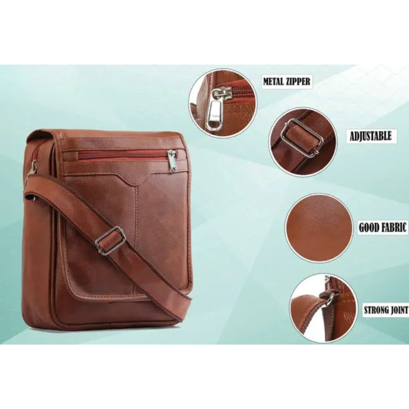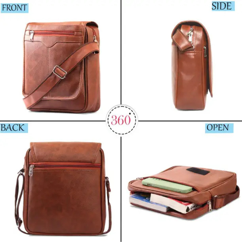 mens brown faux leather shoulder crossbody messenger bag with multiple pockets