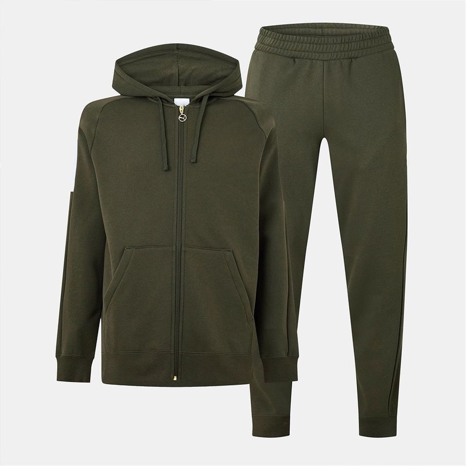 mens olive green tracksuit hoodie and joggers set solid color fleece sportswear winter gym running wear zipper top elastic