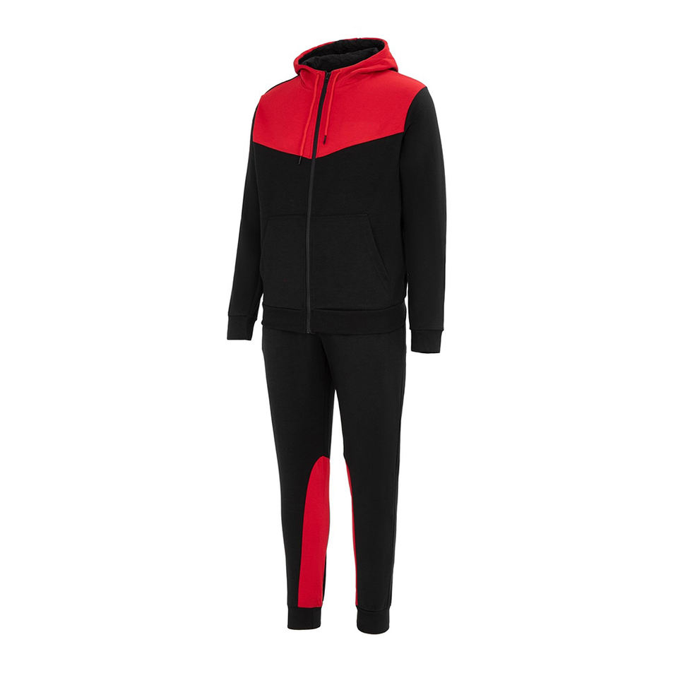 mens red black tracksuit set hoodie and joggers fleece sportswear warm gym training running full zip winter casual outfit