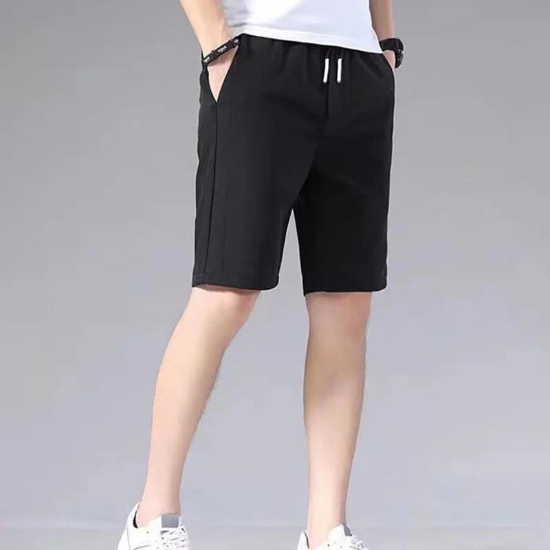 mens sleep shorts Men Summer Casual Shorts Elastic Waist Straight Solidcolor Ice Silk Sports Thin Pocket Knee Length Pants Men