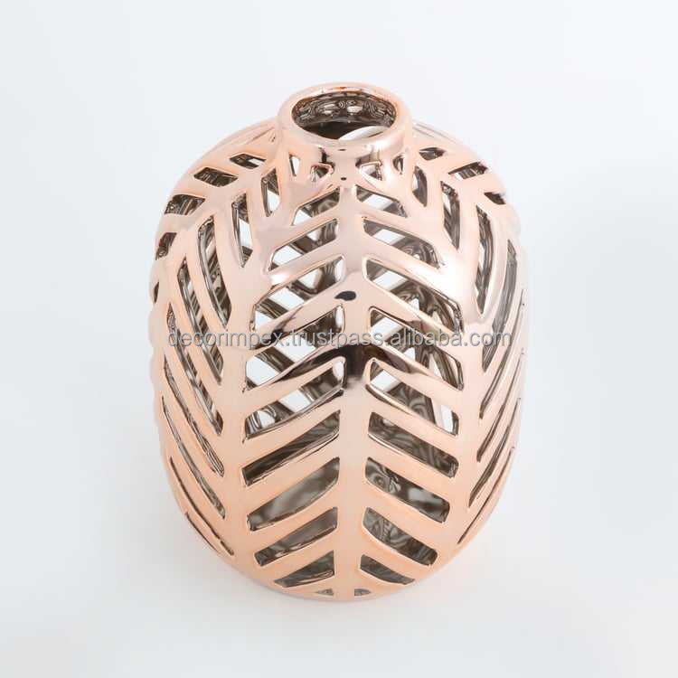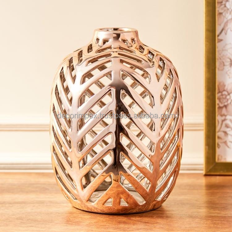 metal Wholesale Home Decor Center Table Multi Purpose Round Flower Cut Out Flower Vase Golden Antique Style Cast Metal