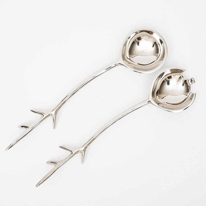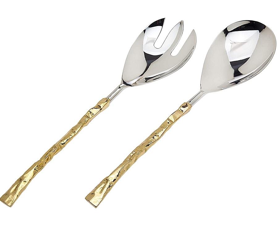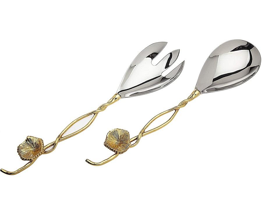 metal decorative salad servers with Handmade unique Design Handle High Quality Safety Material Salad Fork And Spoon