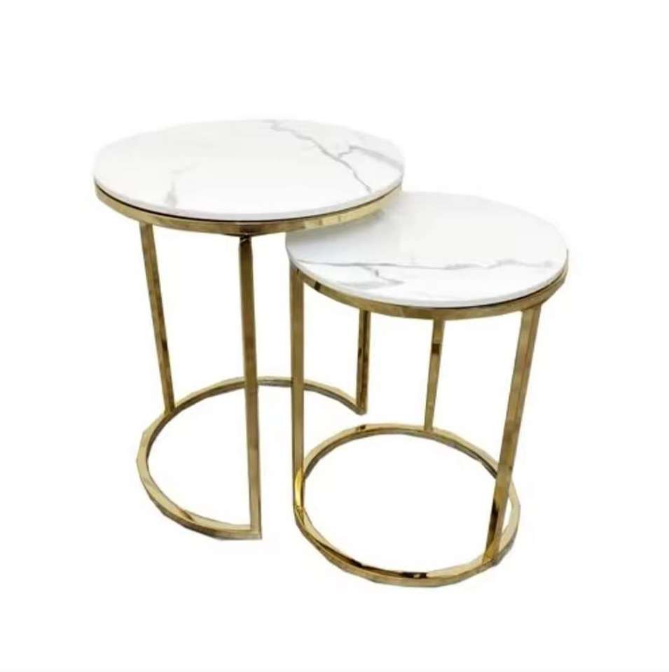metal iron Tall End Table with Marble Top Antique Color Finished Luxury Design Floor Decoration Table for Home