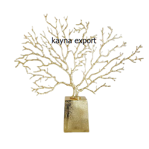 Metal Sculpture Branch Design Gold Platted With Marble Stand