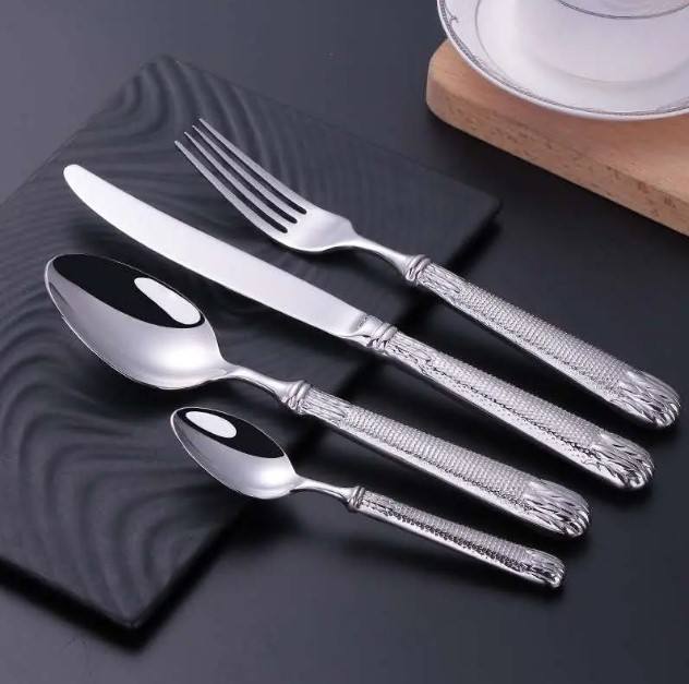 mirrored steel Wedding Reusable Mirror Gold Teaspoon Spoon Fork Knife 304 18/10 Stainless Steel Flatware Sets Cutlery