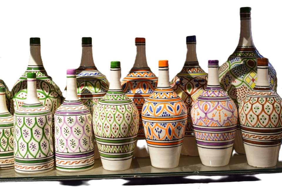 Moroccan Ceramic Pottery Home Decoration Glazed Animal Figurine Jar and Plate Ornaments in Enamel Clay and Porcelain