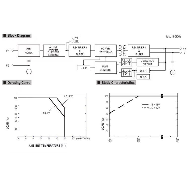 Input Rated Voltage:90~132VAC or 180~264VAC