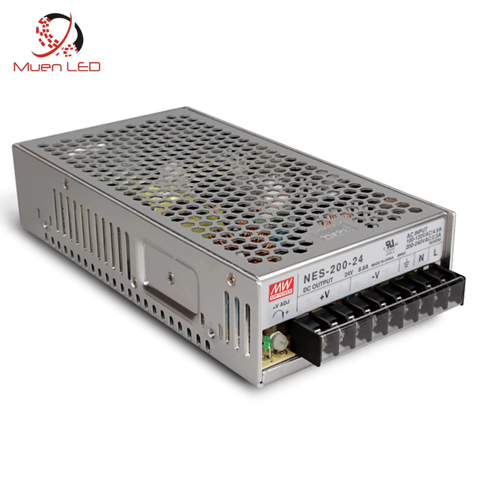 muenled 200W 5V40A LED Power Supply, 110V, IP65, 4.6~5.4V, 47~63Hz, 215x115x50mm