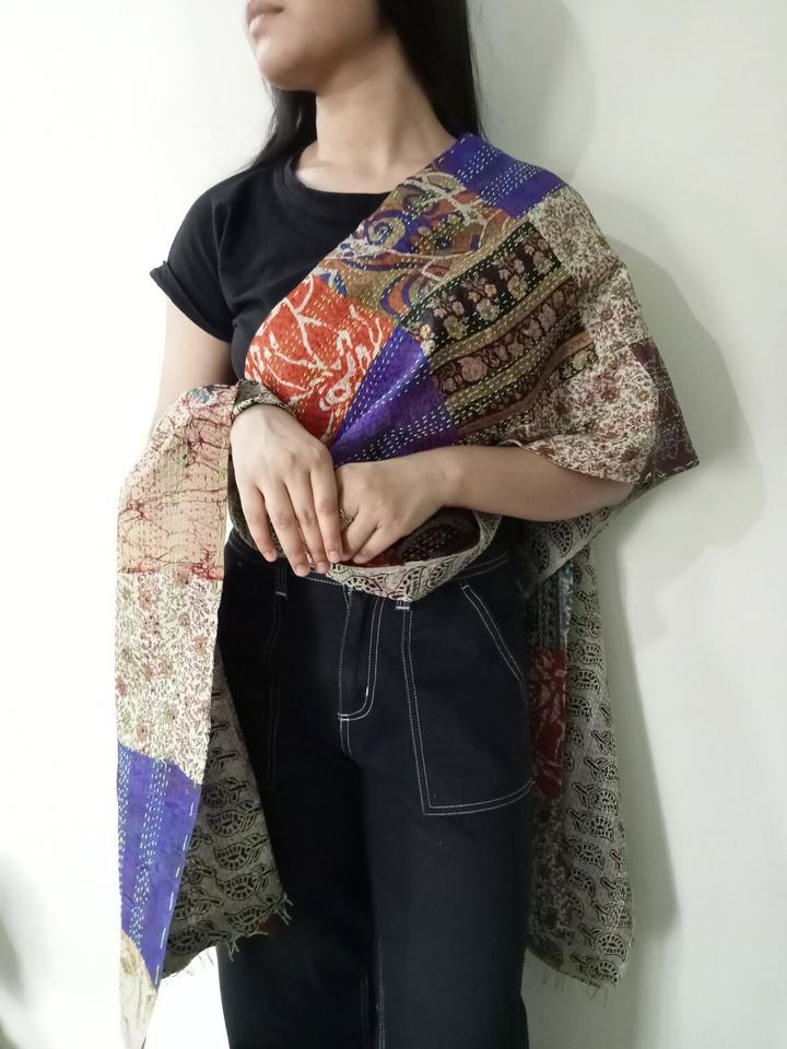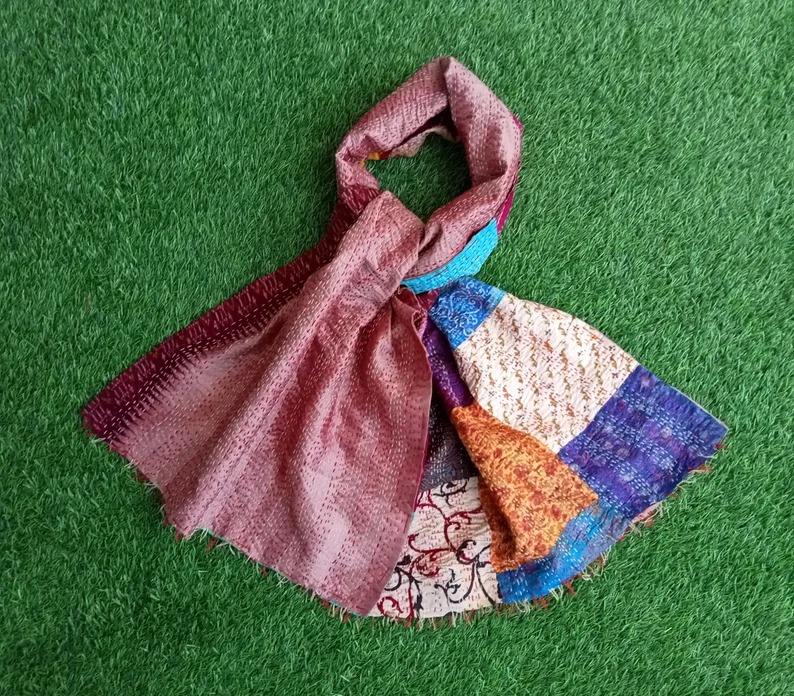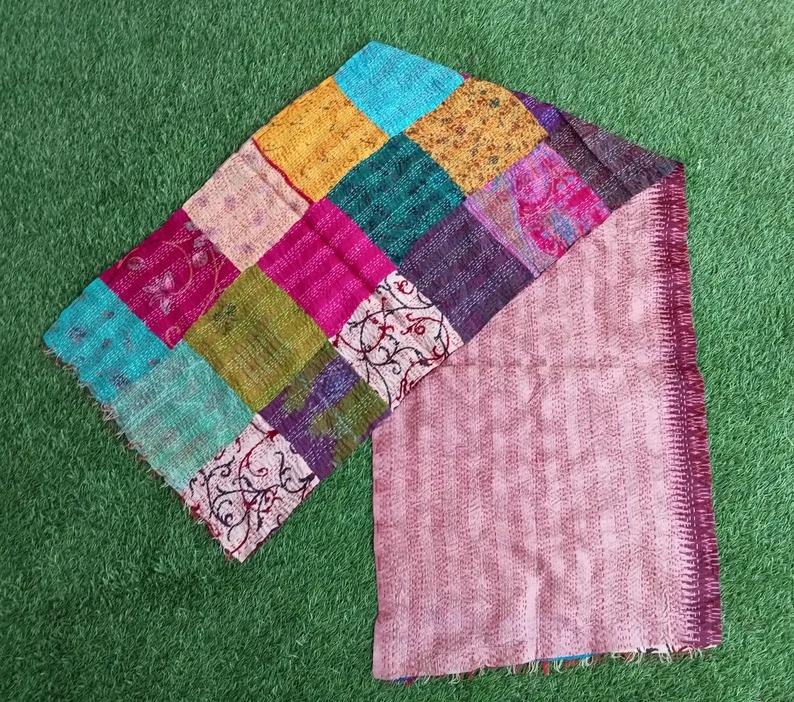 multi colorful sarongs indian handmade silk scarves reversible stole vintage kantha muffler assorted Patchwork stole