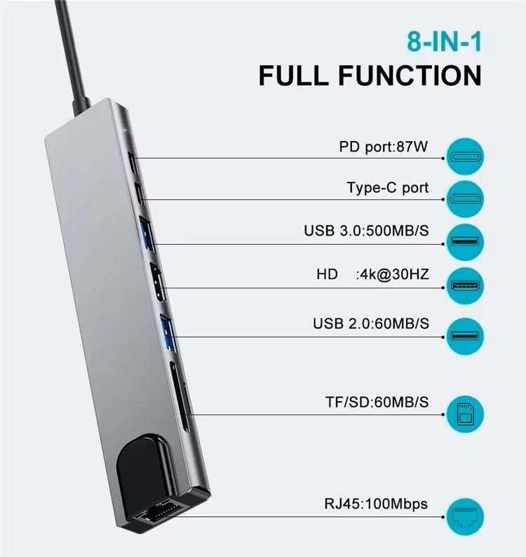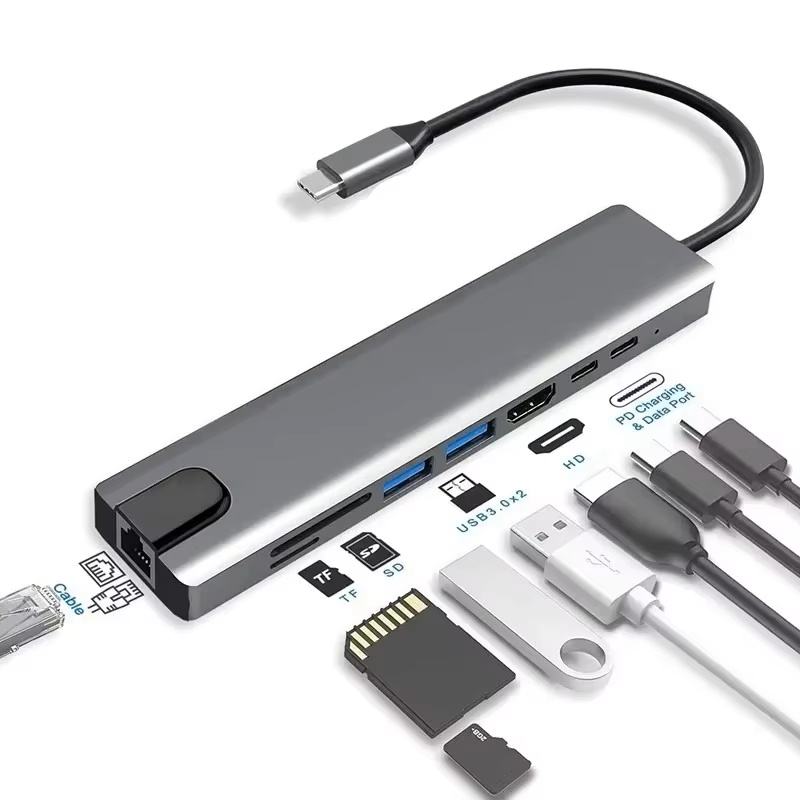 multi port USB C usb c hub C type 3.1 to USB 3.0 4k high definition TV RJ45 LAN Ethernet 8 in 1 multifunctional adapter hub dock