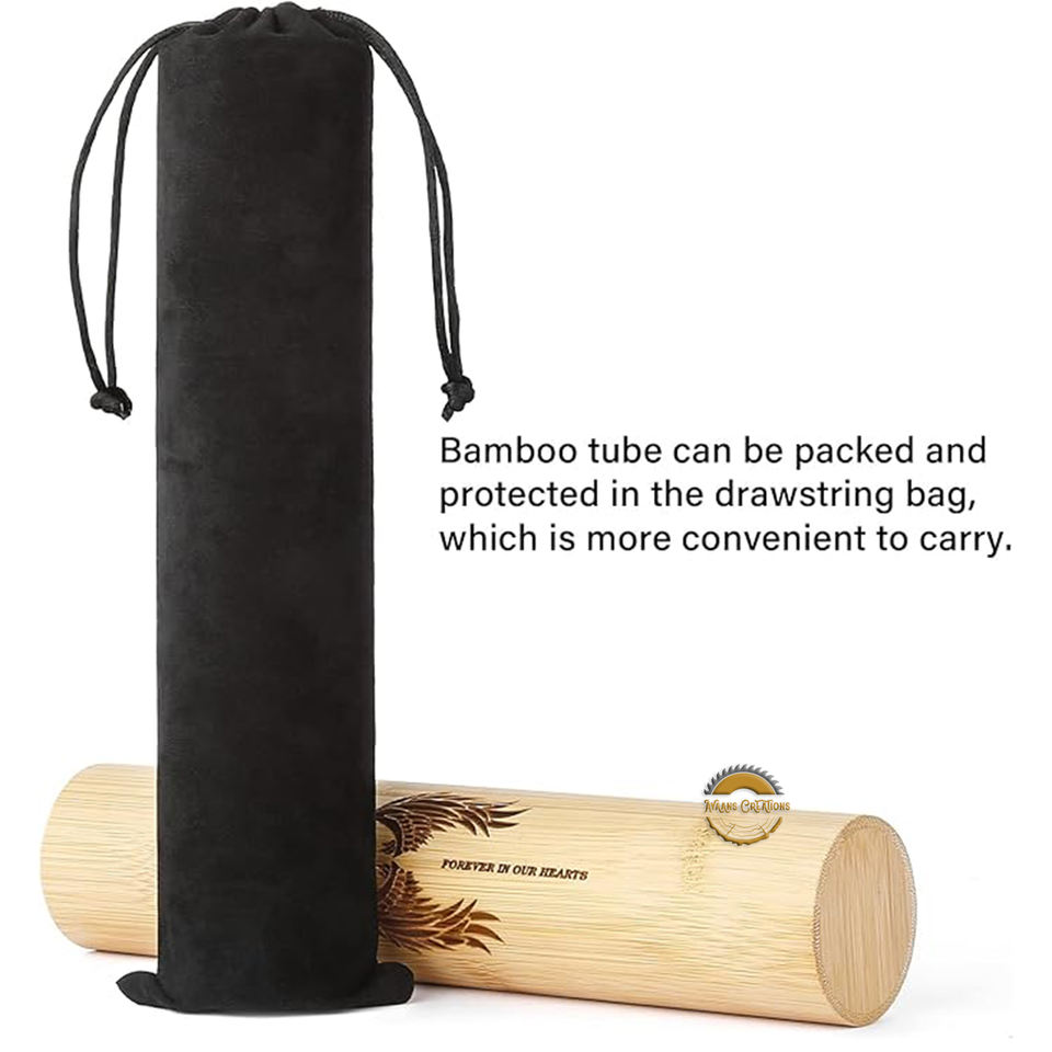 natural bamboo cremation scattering tube, prominently featuring an engraved design of angel wings by AYYANS